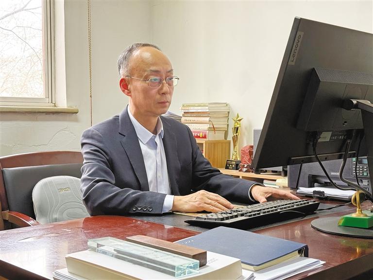 孙巍在办公室编辑记者的稿件。 本报记者 梁易炜摄