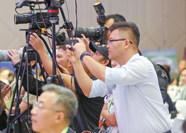 刘印(右一)在“文化陕西”文旅推介会现场。 本报记者 母家亮摄