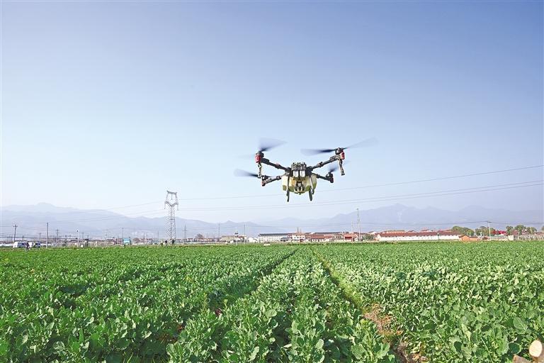 三月十四日,陕西瑞飞创新科技有限公司工作人员操作无人机进行植保作业。