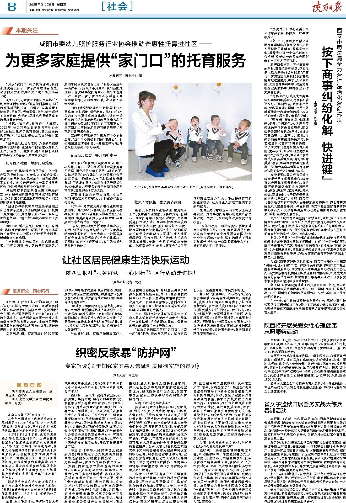 “自从‘家门口’有了托育服务,我们带娃就省心多了。孩子如今在语言表达、运动能力方面进步很大。”咸阳市民汤金云说。