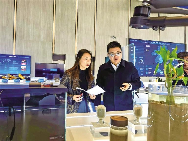 秦创原创新促进中心技术经理人白宇豪为客户讲解新材料的原理及应用场景(资料照片)。 受访者供图
