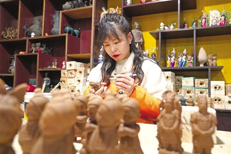 “相较之前单纯的工艺品生产销售,我们还创新开发了各种非遗体验活动,并带动了一些陶俑烧制技艺的老师傅再就业,让本地的‘资深工匠’有了用武之地,也让更多年轻从业者有信心从事传统文化行业。”韩咪咪说。