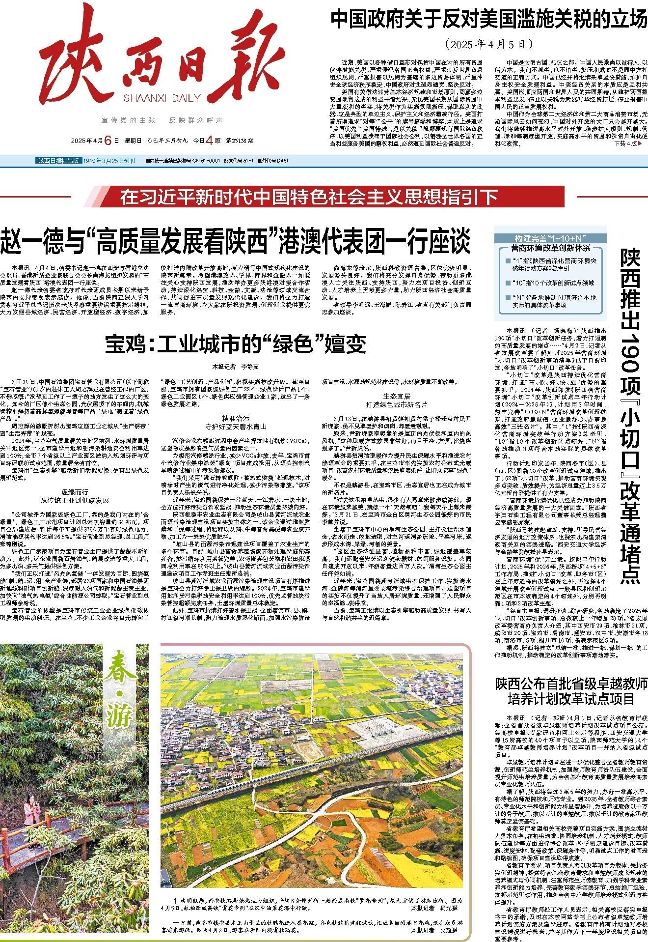 宝石管业的转型是宝鸡市传统工业企业绿色低碳转型发展的生动例证。在宝鸡,不少工业企业将目光转向了“绿色”工艺创新、产品创新,积极实施技改升级。截至目前,宝鸡市拥有国家级绿色工厂22个、绿色设计产品1个、绿色工业园区1个、绿色供应链管理企业1家,蹚出了一条绿色发展之路。