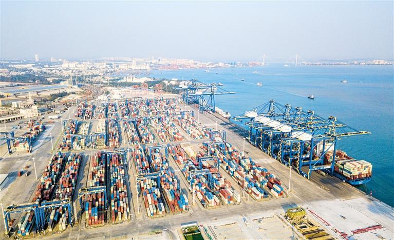 这是在海南洋浦经济开发区拍摄的洋浦国际集装箱码头,洋浦港是我国西部陆海新通道和海南自贸港建设重要的国际航运枢纽(2025年1月11日摄)。 新华社记者 蒲晓旭摄