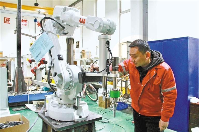 4月3日,记者走进咸阳赛亚思科技有限公司的生产车间,只见技术工人对着一台工业机器人的拧紧系统,专注地进行精度核准。一旁的生产线上,智能搬运车、巡检机器人等产品的生产组装也在有条不紊地进行着。
