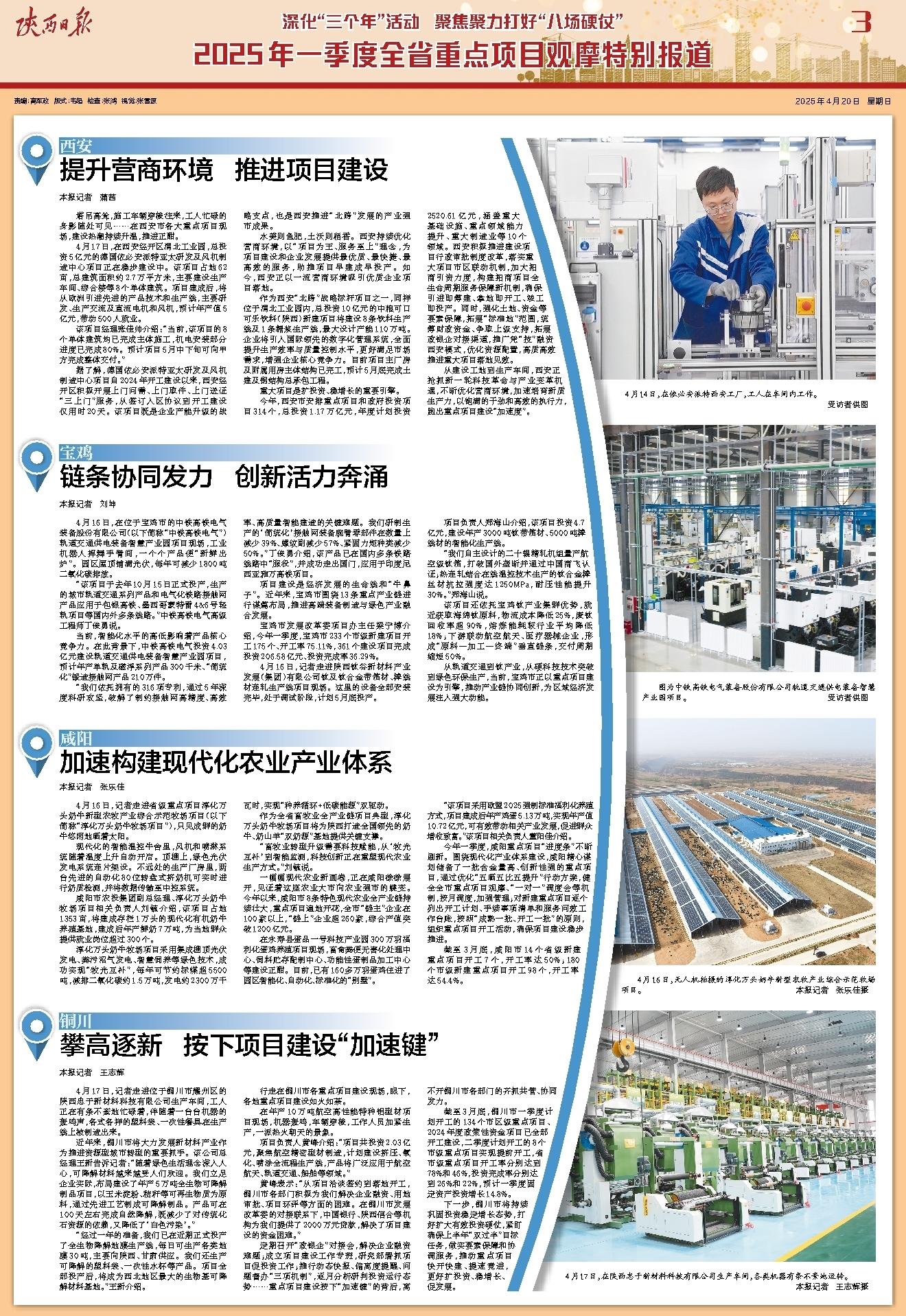 今年,西安市安排重点项目和政府投资项目314个,总投资1.17万亿元,年度计划投资2520.61亿元,涵盖重大基础设施、重点领域能力提升、重大制造业等10个领域。西安积极推进建设项目行政审批制度改革,落实重大项目市区联动机制,加大招商引资力度,构建招商项目全生命周期服务保障新机制,确保引进即筹建、拿地即开工、竣工即投产。同时,强化土地、资金等要素保障,拓展“标准地”范围,统筹财政资金、争取上级支持,拓展政银企对接渠道,推广凭“技”融资西安模式,优化资源配置,高质高效推进重大项目落地见效。