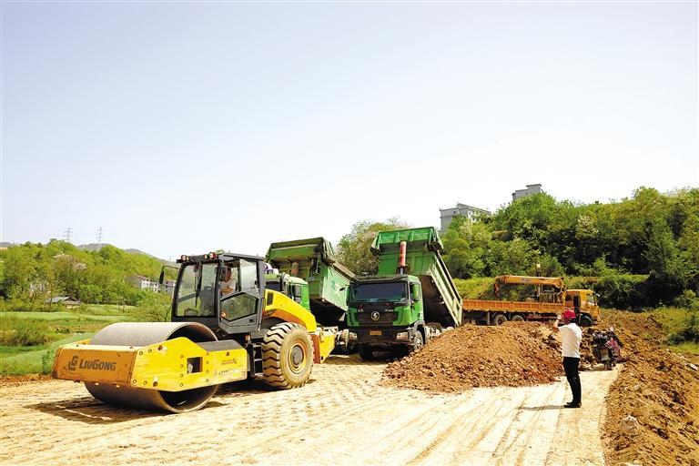 4月17日,安康高新区秦岭大道至鸿龙寨福寿路的道路正在进行路基回填。 本报通讯员 李鹏摄