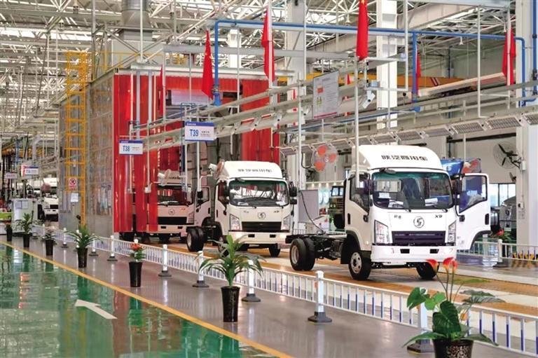 4月22日,在陕汽商用车生产车间,一辆辆商用车走下生产线。 本报通讯员 肖林捷摄