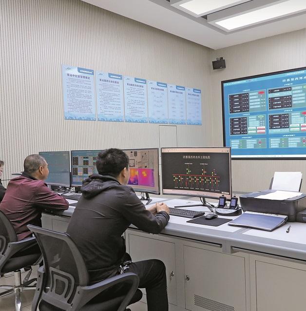 4月22日,工作人员在泾惠渠西郊水库控制大厅实时监控抽水流量。本版照片均由本报记者 许奥博摄
