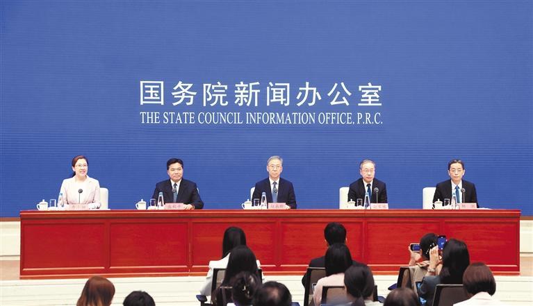 4月28日,国务院新闻办公室在北京举行新闻发布会,国家发展改革委副主任赵辰昕、人力资源社会保障部副部长俞家栋、商务部副部长盛秋平、中国人民银行副行长邹澜介绍稳就业稳经济推动高质量发展政策措施有关情况,并答记者问。 新华社记者 潘旭摄