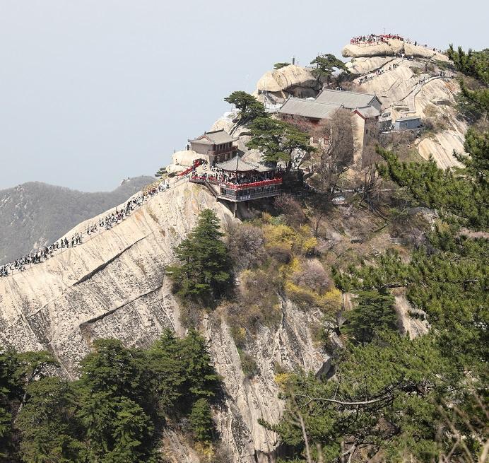 5月1日,华山景区游人如织。图为游客在攀登西峰。 本报记者 文超摄