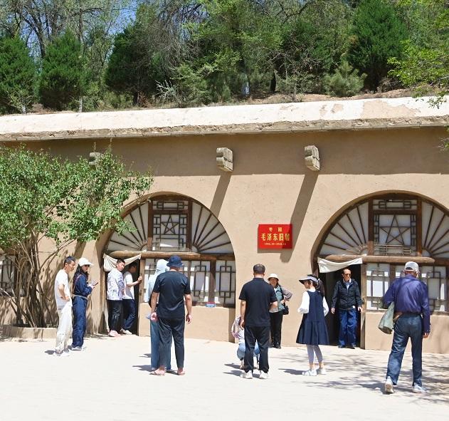 5月1日,游客在延安枣园革命旧址参观。 本报通讯员 王德荣摄