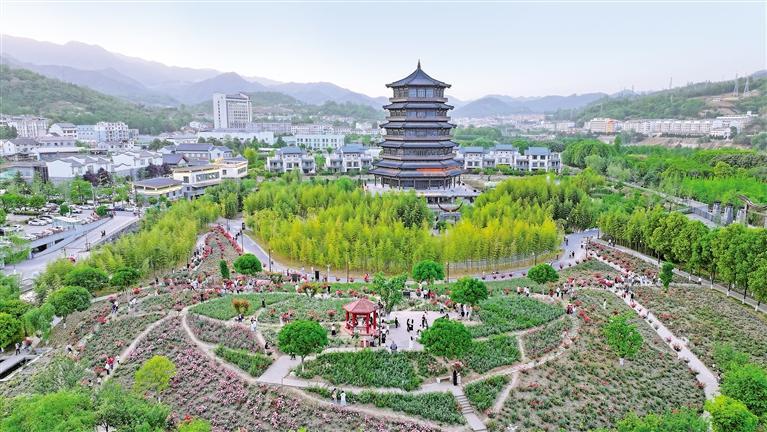 “五一”假期,石泉县旅游市场火爆,景区人流如织,迎来游客接待高峰。图为5月2日,游客在石泉县秦巴风情园赏花。本报通讯员 许兵摄
