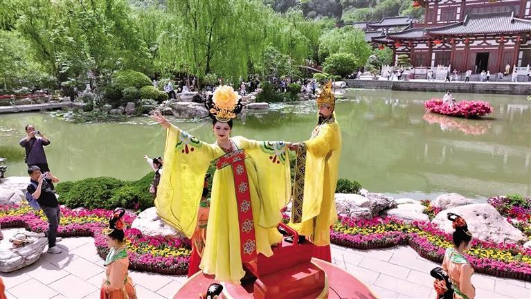 5月2日,演员在西安市临潼区华清宫景区表演《唐宫惊鸿客》。 本报通讯员 王三合摄