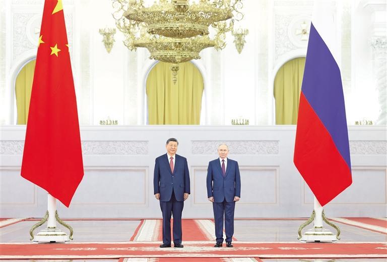 习近平指出,近年来,在双方共同努力下,中俄关系保持稳定、健康、高水平发展态势,长期睦邻友好、互利合作共赢成为两国关系的鲜明特征。两国政治互信根基越扎越深,务实合作纽带越系越牢,人文交流和地方交往越来越红火,新时代的中俄关系更加从容自信、稳定坚韧。历史和现实充分证明,持续发展和深化中俄关系,是传承两国人民世代友好的应有之义,是双方彼此成就、促进各自发展振兴的必然选择,也是捍卫国际公平正义、推进全球治理体系改革的时代呼唤。