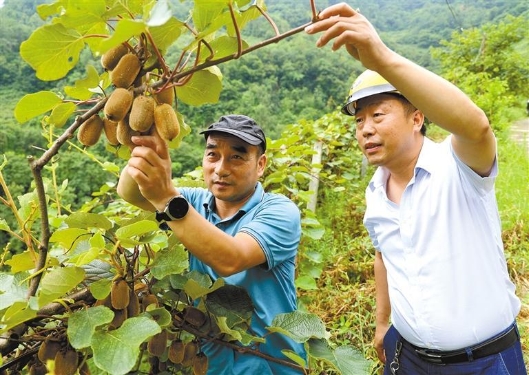 岚皋县高级农艺师谢利华(左)在指导村民进行猕猴桃管护(资料照片)。 受访者供图