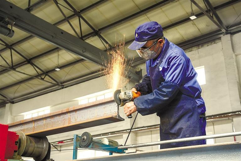 4月30日,茂陵焊轨基地工作人员在打磨钢轨。