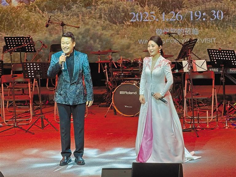 “百青”人才苏文(左)演唱陕北民歌(资料照片)。