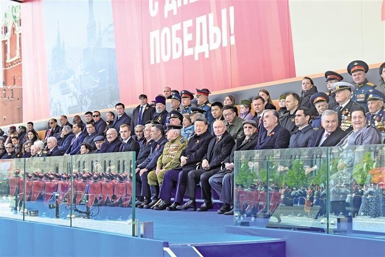 当地时间5月9日,俄罗斯举行盛大庆典,纪念苏联伟大卫国战争胜利80周年。国家主席习近平和来自世界20多个国家及国际组织领导人应邀出席庆典。 新华社记者 谢环驰摄