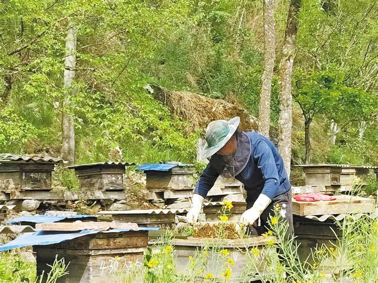 5月7日,佛坪县长角坝镇龙草坪村的蜂农在进行蜜蜂分箱作业。龙草坪村80%以上的农户发展中蜂养殖,年产蜂蜜30余吨,产品远销北京、深圳、广州等城市。 本报通讯员 吴飞摄