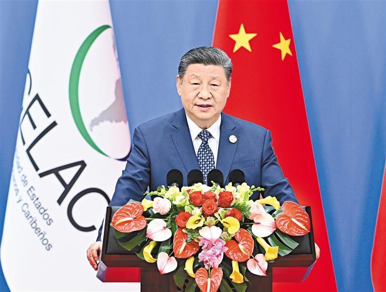 习近平最后强调,无论国际风云如何变化,中国始终做拉美和加勒比国家的好朋友、好伙伴,同拉方在各自现代化征程上并肩前行,共同谱写构建中拉命运共同体新篇章。