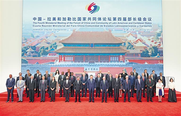 5月13日上午,国家主席习近平在北京国家会议中心出席中国—拉美和加勒比国家共同体论坛第四届部长级会议开幕式并发表主旨讲话。这是习近平同与会嘉宾集体合影。新华社记者 丁海涛摄
