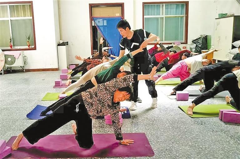 去年5月,孙小峰的乡村瑜伽课在小惠村正式开课。“起初,我是想给妈妈教瑜伽,让她强身健体。后来,妈妈把同龄人叫来共同练习,希望大家一起收获健康与快乐。”他说。