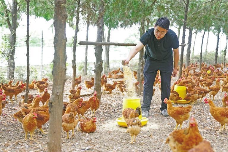 “我们这里的红羽鸡在林地散养,喂养周期长,鸡肉紧实,很受市场欢迎。”王俊翔说。目前,韩家窑村年出栏‘跑山鸡’超万羽,60%对外销售、40%本地直销,年销售收入达90万元。