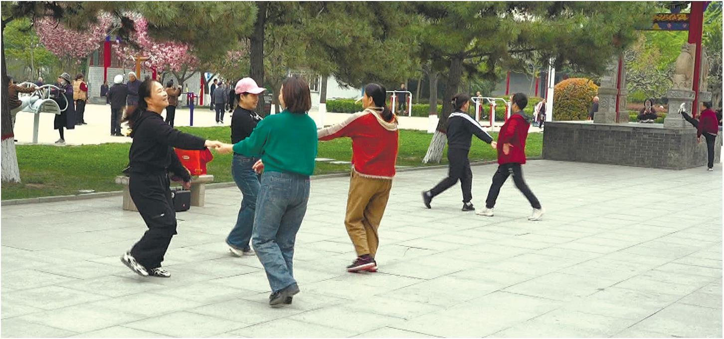 渭北旱塬上,5月15日清晨,合阳天合园的健身广场上已经聚集了很多锻炼的老人。