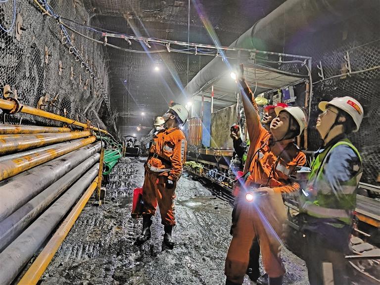 西安科技大学“深部智能探测”团队师生在井下调研煤层倾角变化区巷道围岩煤岩分布情况(资料照片)。 受访单位供图