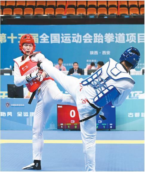 本报讯 (记者 张江舟文/图)5月20日,第十五届全国运动会跆拳道项目资格赛(一)在陕西省体育馆落下帷幕。在为期4天的比赛中,来自全国各地35支代表队的400余名运动员向十五运会跆拳道项目的决赛参赛资格发起冲击。经过激烈角逐,16名运动员脱颖而出,收获决赛“入场券”。
