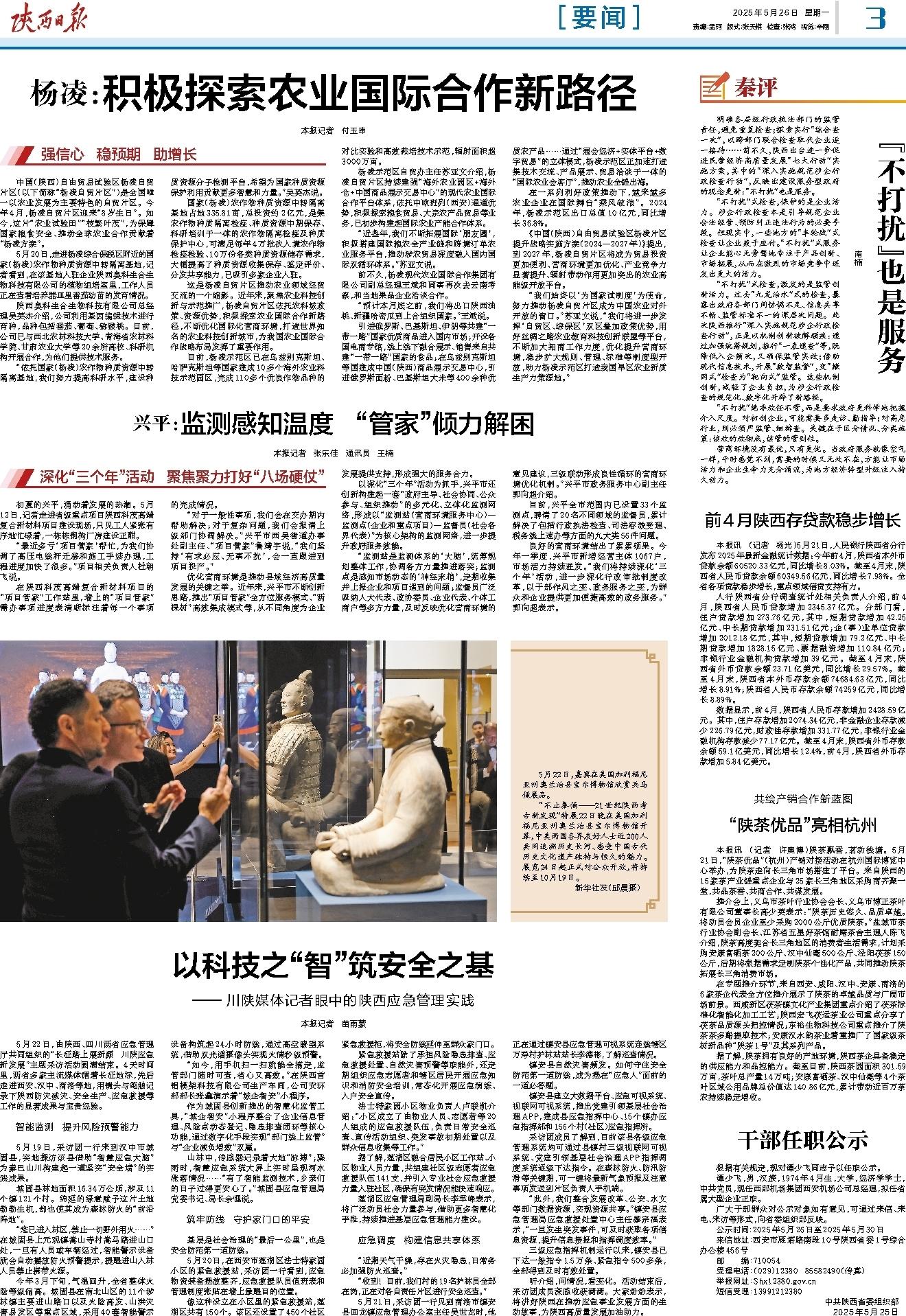 “我们始终以‘为国家试制度’为使命,努力推动杨凌自贸片区成为中国农业对外开放的窗口。”苏亚文说,“我们将进一步发挥‘自贸区、综保区’双区叠加政策优势,用好丝绸之路农业教育科技创新联盟等平台,不断加大招商工作力度,优化提升营商环境,稳步扩大规则、管理、标准等制度型开放,助力杨凌示范区打造我国旱区农业新质生产力策源地。”