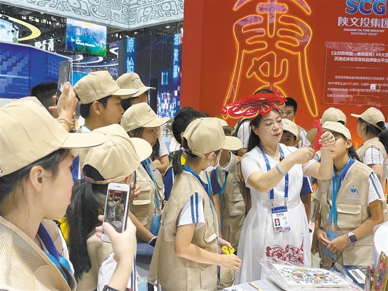 来自深圳教育报刊总社有限公司的领队老师余博告诉记者,正在进行非遗体验的是深圳报业教育传媒集团的小记者。5月24日,他们已经探访了一部分展馆。“今天也是收获满满!感谢陕西馆负责同志和各位非遗代表性传承人的支持。希望孩子们通过这些非遗代表性项目,能更多地了解全国各地的历史文化和民间艺术。”余博说。
