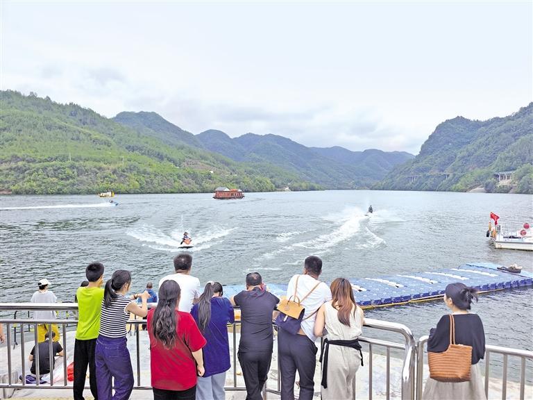 端午假期,安康独特的水上资源吸引游客前来体验。图为6月2日,游客在石泉县后柳镇汉江流域体验水上项目。 本报通讯员 沈奕君摄