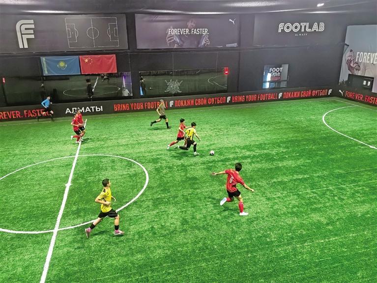 6月4日下午,一场别开生面的中哈足球友谊赛在阿拉木图Smart Football体育馆进行。