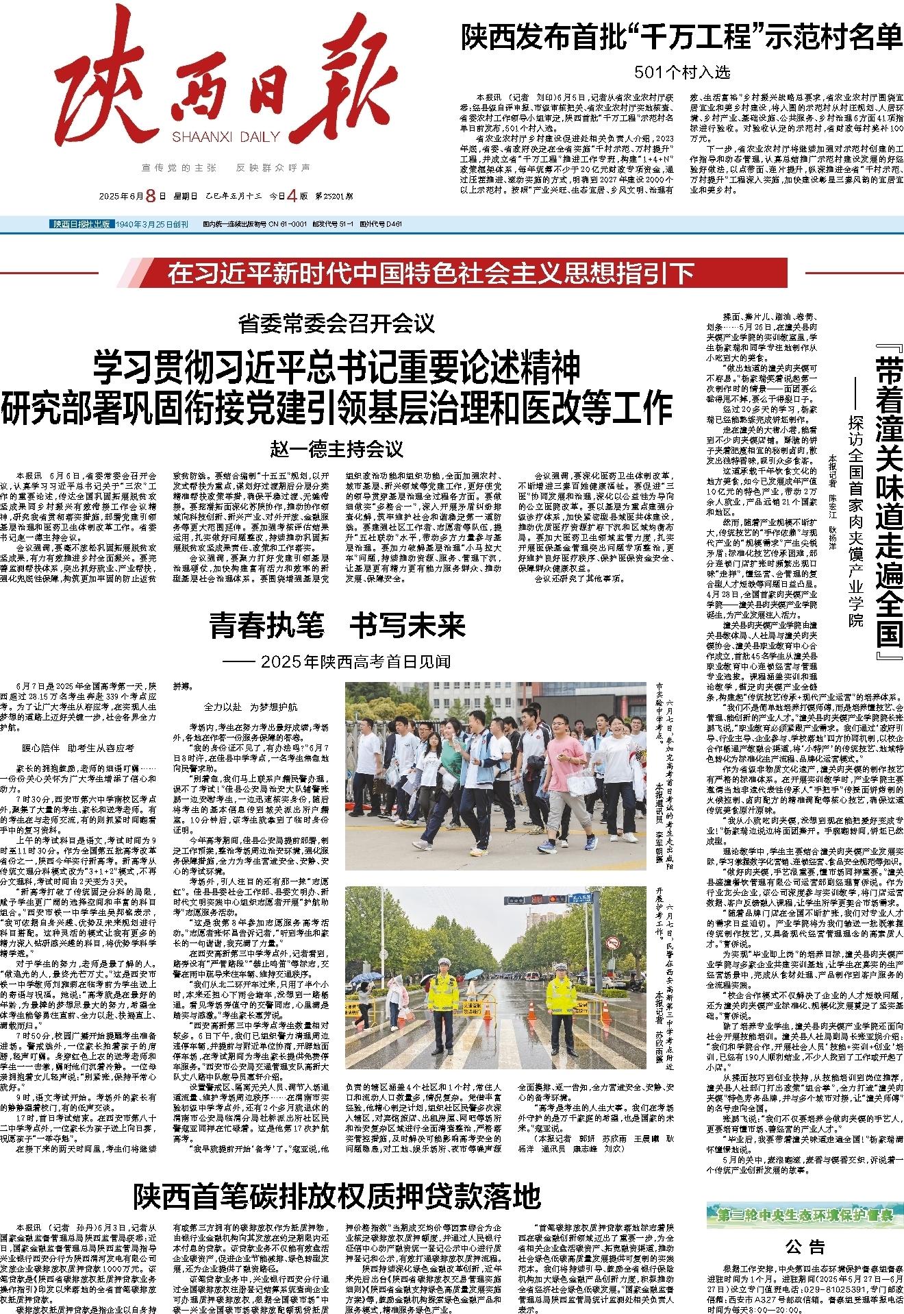 本报讯 (记者 刘印)6月5日,记者从省农业农村厅获悉:经县级自评申报、市级审核把关、省农业农村厅实地核查、省委农村工作领导小组审定,陕西首批“千万工程”示范村名单日前发布,501个村入选。