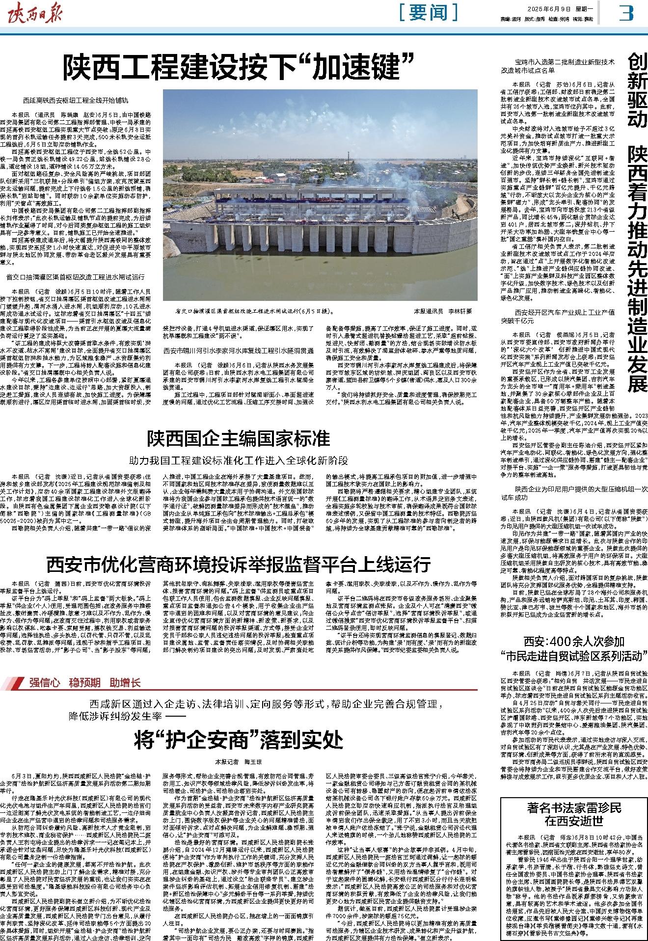 法治是最好的营商环境。西咸新区人民法院副院长张鹏介绍,自2024年12月揭牌运行以来,西咸新区人民法院便将“护企安商”作为审判执行工作的关键词,充分发挥人民法院在产权保护、激励创新、维护市场秩序等方面的职能作用,在组建金融、知识产权、涉外等专业审判团队公正高效审理涉企纠纷的基础上,通过设立“助企联络专员”、建立涉企案件经济影响评估机制、拓展企业信用修复机制、搭建“法院+新区法治保障中心”多元解纷平台等一系列举措,持续优化辖区法治化营商环境,为西咸新区企业提供更快更好的司法服务。