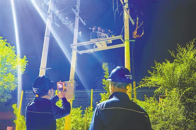 连日来,电力人员开启“白+黑”模式:白天,通过无人机对麦田周边的10千伏线路进行立体化巡查,精准定位树障、绝缘老化等隐患;夜间,抢抓农户收工间隙,为电线杆贴上反光防撞贴,避免农机误碰。