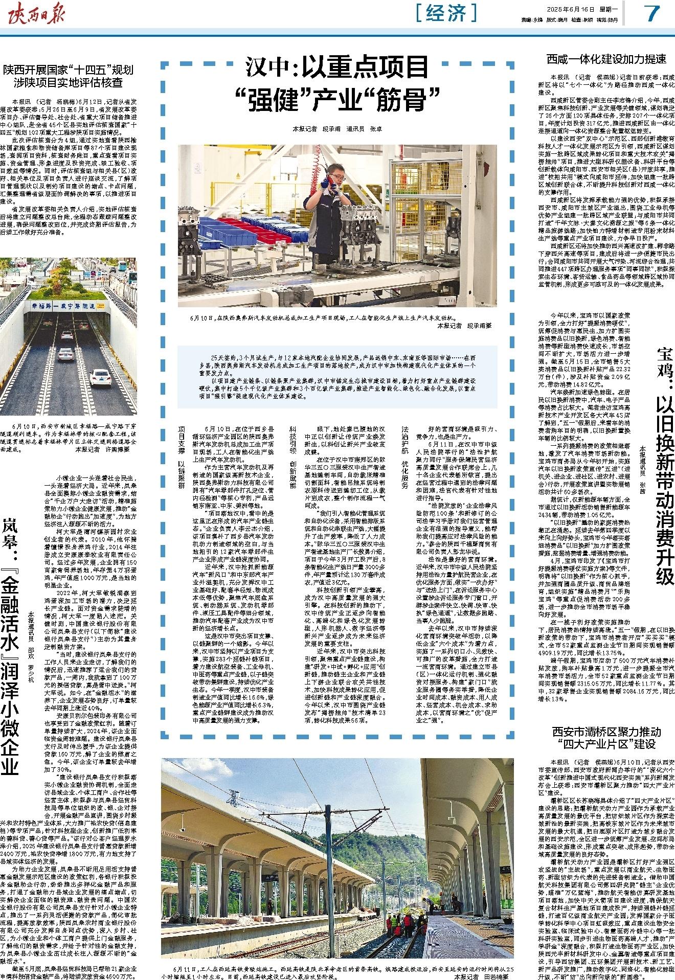 这是汉中市突出项目支撑、以链聚群的一个缩影。今年以来,汉中市坚持以产业项目为支撑,实施283个延链补链项目,着力建设航空装备、工业母机、中医药等重点产业链,以子链突破带动集群建设,持续优化产业生态。今年一季度,汉中市装备制造业产值同比增长16.6%,绿色能源产业产值同比增长6.3%,重点产业链群建设成为推动汉中高质量发展的强力支撑。