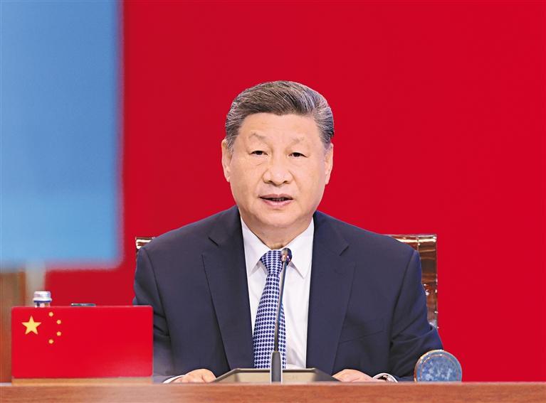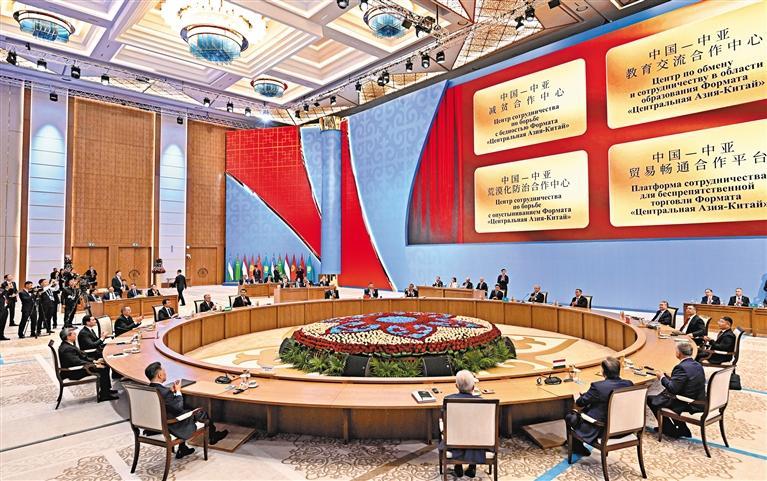习近平指出,两年前,我们相聚中国西安,共同擘画了中国中亚合作的“西安愿景”。两年来,中国同中亚国家共建“一带一路”走深走实,各领域合作积极推进,中国—中亚机制四梁八柱基本成型,首届峰会共识全面落地,合作之路越走越宽广,友谊之花越开越灿烂。