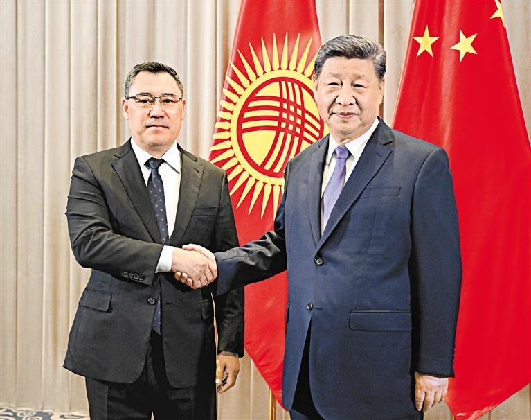 习近平强调,中吉合作大有可为。双方要扩大贸易和投资规模,深化金融合作;完善互联互通网络,高质量推进中吉乌铁路建设;拓展新兴领域合作,在清洁能源、绿色矿产、人工智能等方面培育新的增长点;深化文化、旅游、教育、卫生等领域交流,实施更多惠民项目。中吉两国都是经济全球化的受益者,要共同反对单边主义,坚定维护国际经贸秩序,推动构建更加公正合理的全球治理体系。双方将先后担任上海合作组织轮值主席国并主办峰会,中方愿同吉方相互支持,共同推动上合组织取得更大发展。
