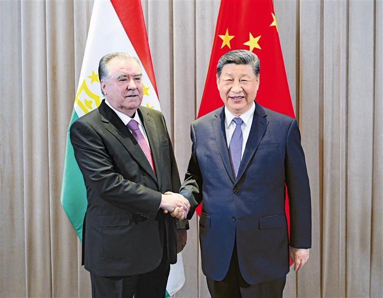 习近平强调,中国是塔吉克斯坦可以信赖的邻居和伙伴,坚定支持塔方维护国家独立、主权、安全。双方要发挥好中塔外长战略对话机制作用,协调推进各领域合作;扩大双边贸易和投资规模,加快推进交通基础设施项目建设,持续提升互联互通水平;充分发挥孔子学院、鲁班工坊、中医药中心作用,办好今年秋天在塔吉克斯坦举行的“中国文化日”;进一步密切执法安全合作,加大力度打击“三股势力”。中塔双方在维护多边主义和捍卫国际经贸秩序上有着共同利益,要在中国—中亚合作等多边机制中加强协调配合。中方支持塔方在国际气候治理中发挥重要作用。