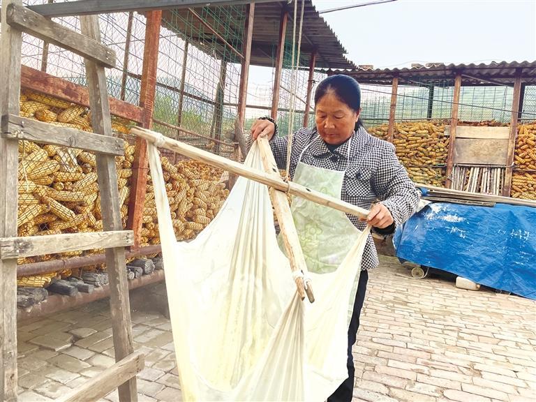 程随兰在筛选豆渣(资料照片)。 本报通讯员 范晓霞摄