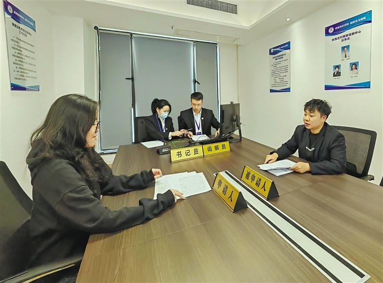 陕西鼓励和支持发展专业化商事调解组织,为企业提供绿色便捷的纠纷解决渠道。图为陕西正和商事调解中心工作人员在调解企业纠纷(资料照片)。 本报记者 郑斐摄