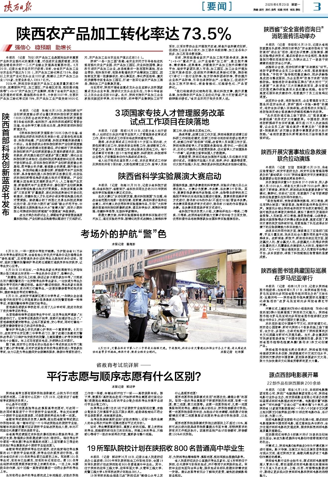 2024年,陕西启动实施农产品加工业高质量发展三年行动,统筹原料产区、加工园区、产品销区布局,规划建设粮油等“1+8+N”农产品加工产业集群,明确了全省农产品加工业发展的时间表、路线图和任务书,力争到2027年,主要农产品加工转化率达到78%,农产品加工业产值突破9500亿元,农产品加工业与农业总产值比达到2.6∶1。
