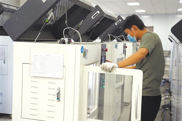在陕西聚高增材智造科技发展有限公司的3D打印生产线上,机器快速运转,批量生产无人机零部件。