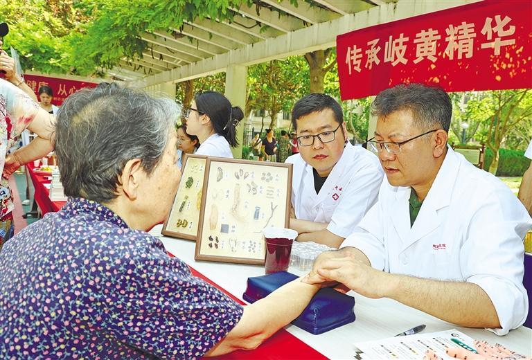 6月24日,医护人员给群众把脉。