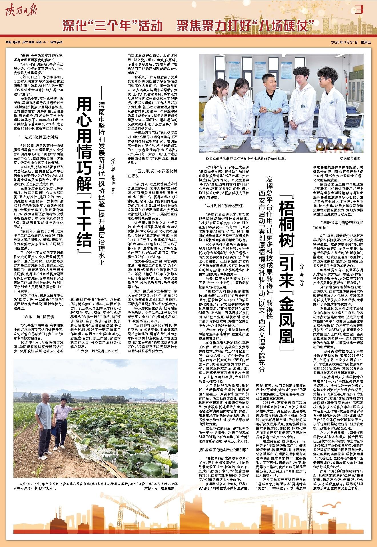 2023年7月,西安市正式启动“秦创原梧桐树科转行动”,通过深化科技成果转化“三项改革”,大力推进科研成果转化。西安文理学院作为“秦创原梧桐树科转行动”总平台,不断发挥学科优势,着力推进科转行动,让更多科技成果转得好、转得快。