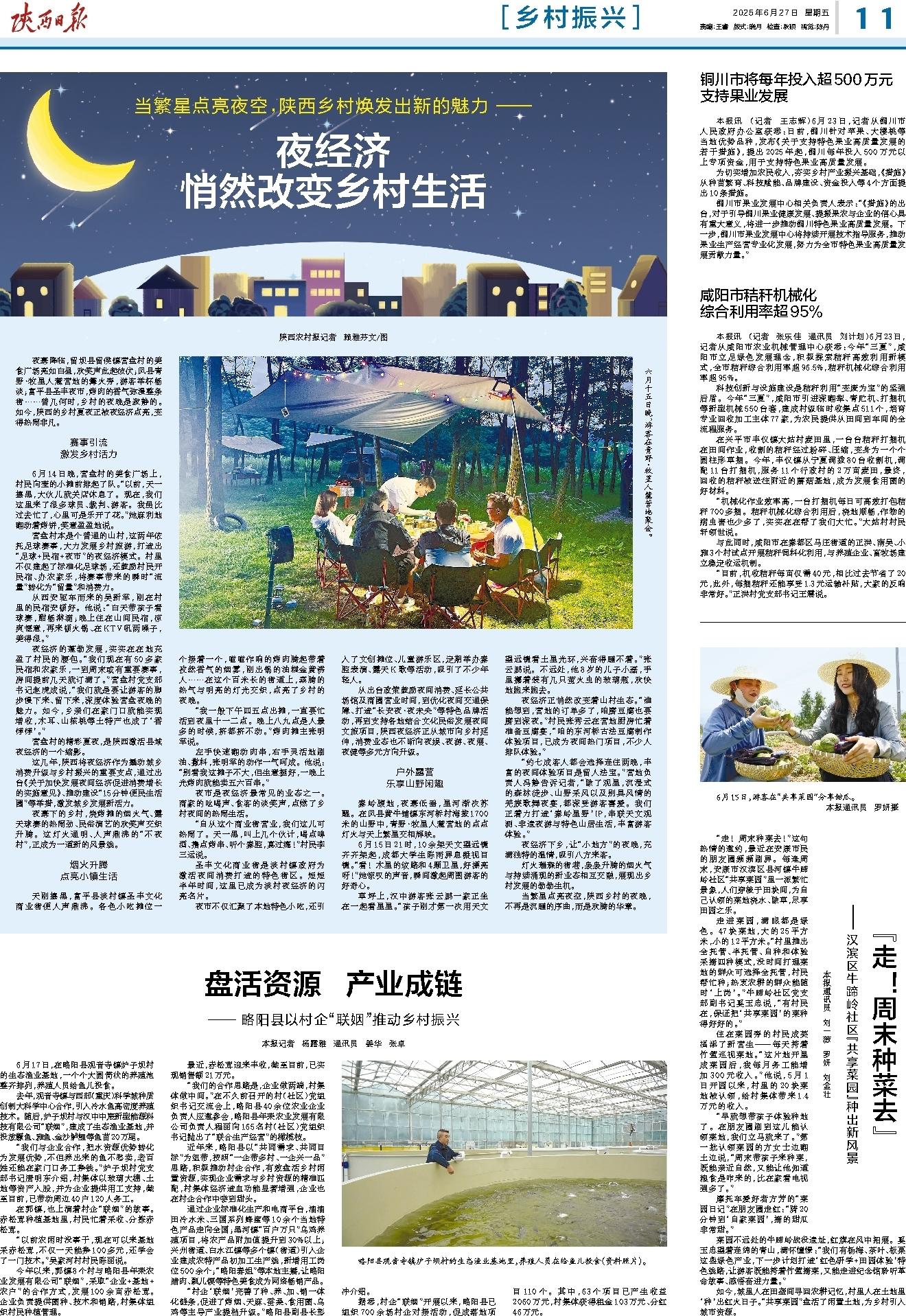 夜幕降临,留坝县留侯镇营盘村的美食广场亮如白昼,欢笑声此起彼伏;凤县青野·牧星人麓营地的篝火旁,游客举杯畅谈;富平县圣丰夜市,烤肉的香气弥漫整条街……曾几何时,乡村的夜晚是寂静的。如今,陕西的乡村夏夜正被夜经济点亮,变得热闹非凡。