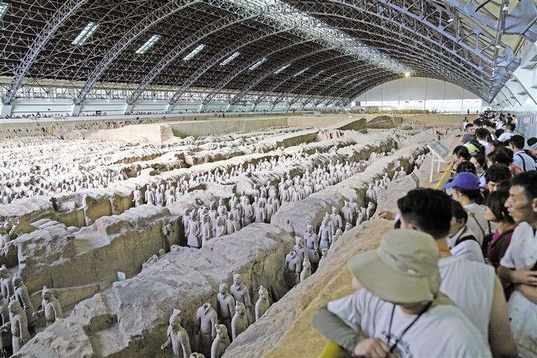 7月2日,游客在秦始皇兵马俑博物馆参观。 本报通讯员 王三合摄